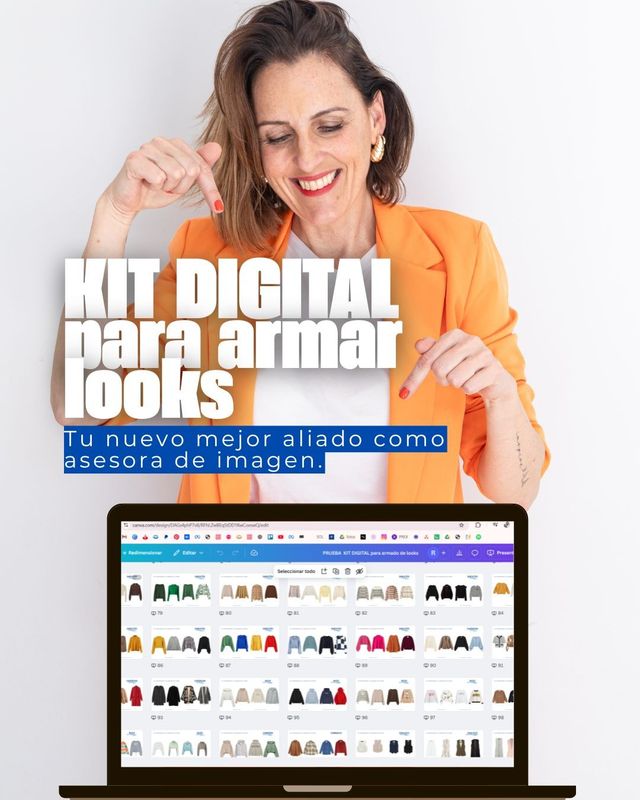 Con más de 1.000 imágenes de prendas y accesorios (sin fondo), vas a poder diseñar propuestas visuales para tus clientas en minutos y sin complicaciones.